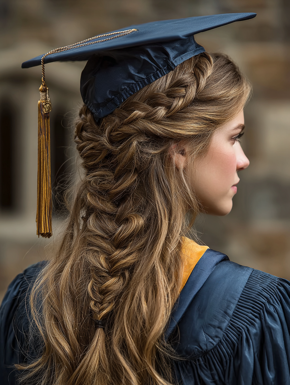 A classic French braid is a timeless and elegant Graduation Hairstyles With Cap option. This style is not only beautiful but also practical, keeping your hair neatly in place throughout the day. A French braid is an excellent Hairstyle For Cap And Gown as it distributes the hair evenly, making it comfortable to wear under a graduation cap. To create a French braid, start at the crown of your head and divide your hair into three sections. Begin braiding, adding more hair to each section as you work your way down. Secure the end with an elastic band. The French braid provides a polished and sophisticated look. This Convocation Hairstyle Graduation option is visually stunning and practical. Evaluate how your Headband Cap And Gown accentuates the braid. Using some clever Graduation Cap Tricks will keep the braid secure. Comprehending How To Wear Your Cap For Graduation effectively ensures you always How To Make Grad Cap Look Good and avoid needing to How To Fix Graduation Cap. Following these Graduation Cap Wearing Ideas will elevate your style. Paying attention to How To Wear Graduation Cap Hair enhances your overall appearance.